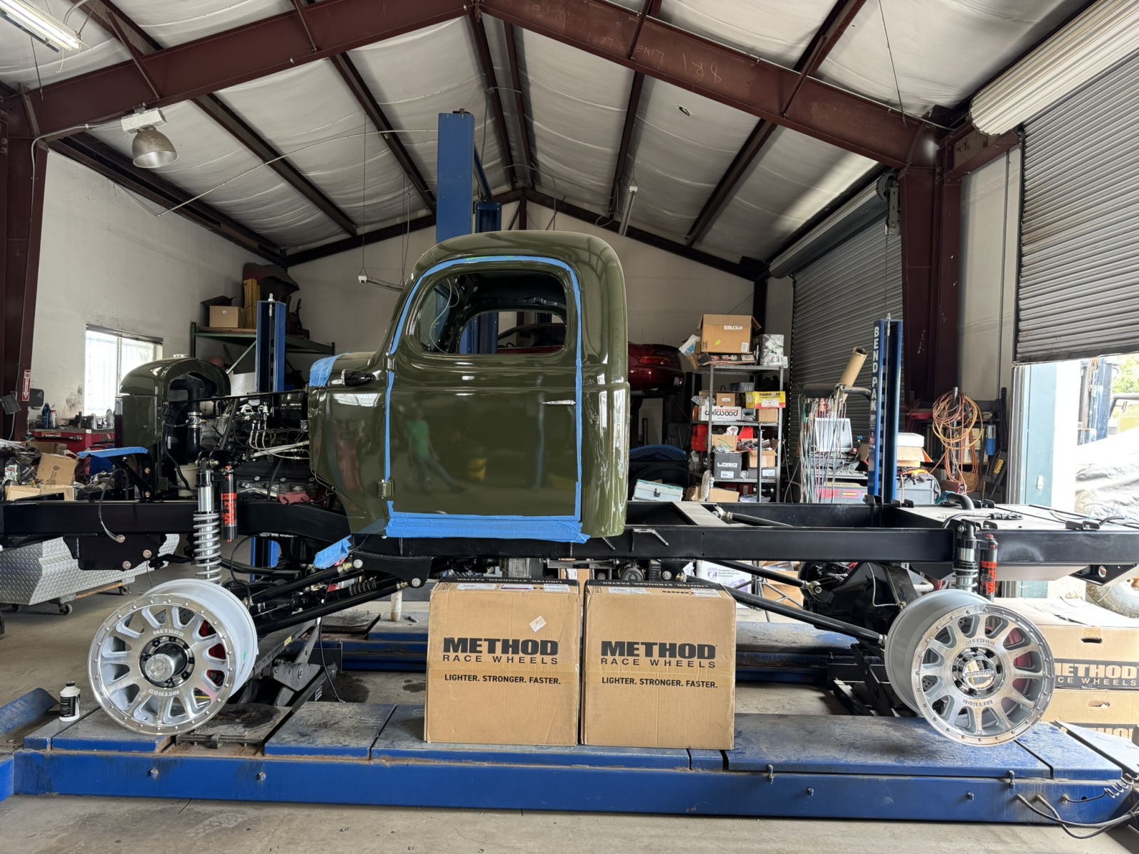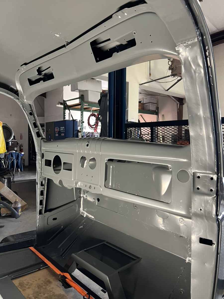 The truck cab and all sheet metal were sandblasted and zinc powder coated. The firewall and dash were sourced and replaced from a donor vehicle. New doors, bed, and running boards all came from Tisdale Coachworks.